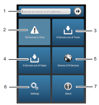 Error: Displays the number of devices on which an error other than the out-of-toner/paper error occurs. Press to display the details.