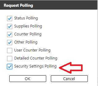 Check only Security Settings Polling and click OK. The device security and network settings are retrieved and displayed in device properties window.