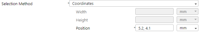 The X/Y-direction length through the upper-left corner of the area. Enter these values in the Position field, separated by a comma.