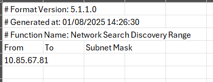 To correctly identify the target devices during a later step within the Deployment Tool, export the target group device list to a CSV format. You can later copy and paste the IP Address column to a suitable import format when identifying the Network Rangewithin the Deployment Tool settings.