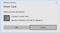 After the certificate is selected, you are prompted to insert the associated smart card.