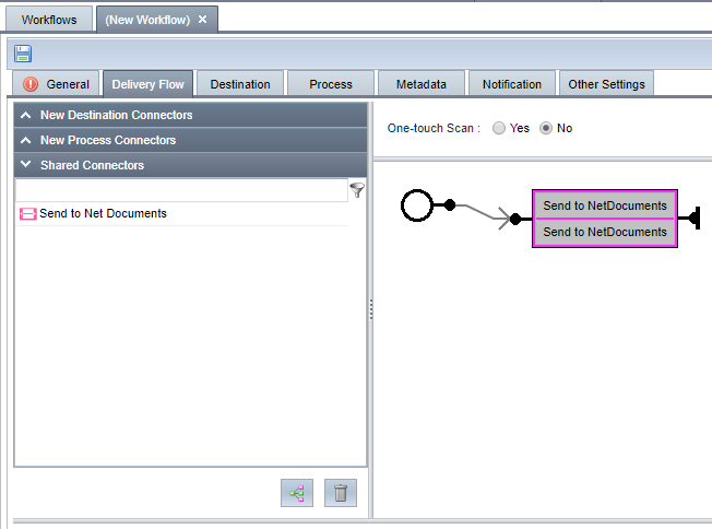 Some connectors allow you to configure One-Touch scan. When enabled, users login at the MFP, launch the connector and all settings are selected for them. They simply load the document and tap Start to begin scanning. However, you can also enable the Display metadata entry screen, which will allow MFP users to enter document metadata that can be used for document filtering, etc. Refer to the Connector configuration instructions for the connector in question to determine if One-Touch scan is supported.