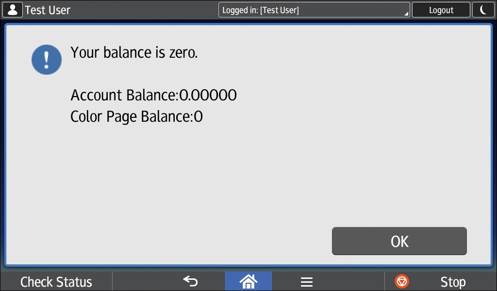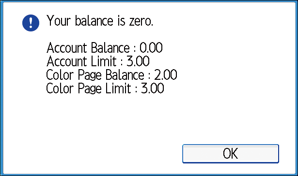 When the usage limit is exceeded after performing authentication and logging in to a device successfully or when printing is performed, a warning message may be displayed on the operation screen of the device.