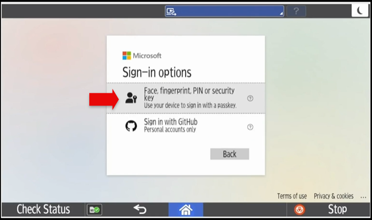 If authentication fails, the message displayed on the MFP may not be specific. You can attempt to retry the authentication process, select a different authentication method, or reset your passkey on your PC and then try again.