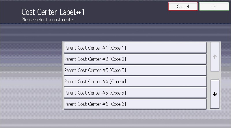 Example of Cost Center screen (when using the Smart Operation Panel)