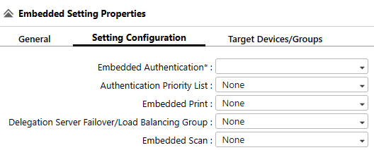 The options on the Setting Configuration tab must be configured elsewhere within the Streamline NX Embedded Settings configuration options before they will appear for selection in this tab.