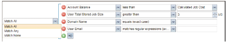 Specify how to apply conditions from [Match All], [Match Any], and [Match None].